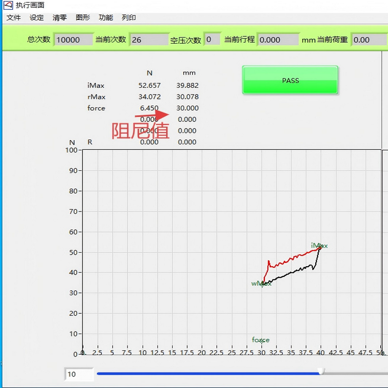 示功图:这是最重要的测试结果。它是阻尼力相对于活塞位移的曲线图,形成一个封闭的环形。